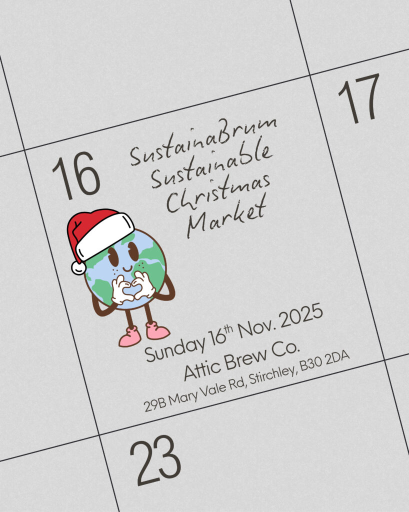 We’re so excited to be hosting our third SustainaBrum Sustainable Christmas Market at Attic Brew in Stirchley! All the traders are sustainable, so it’s the perfect place to pick up eco gifts for Christmas! There will be Christmas tunes, and the beer will be flowing! What else do you need to kick the festive season off?!